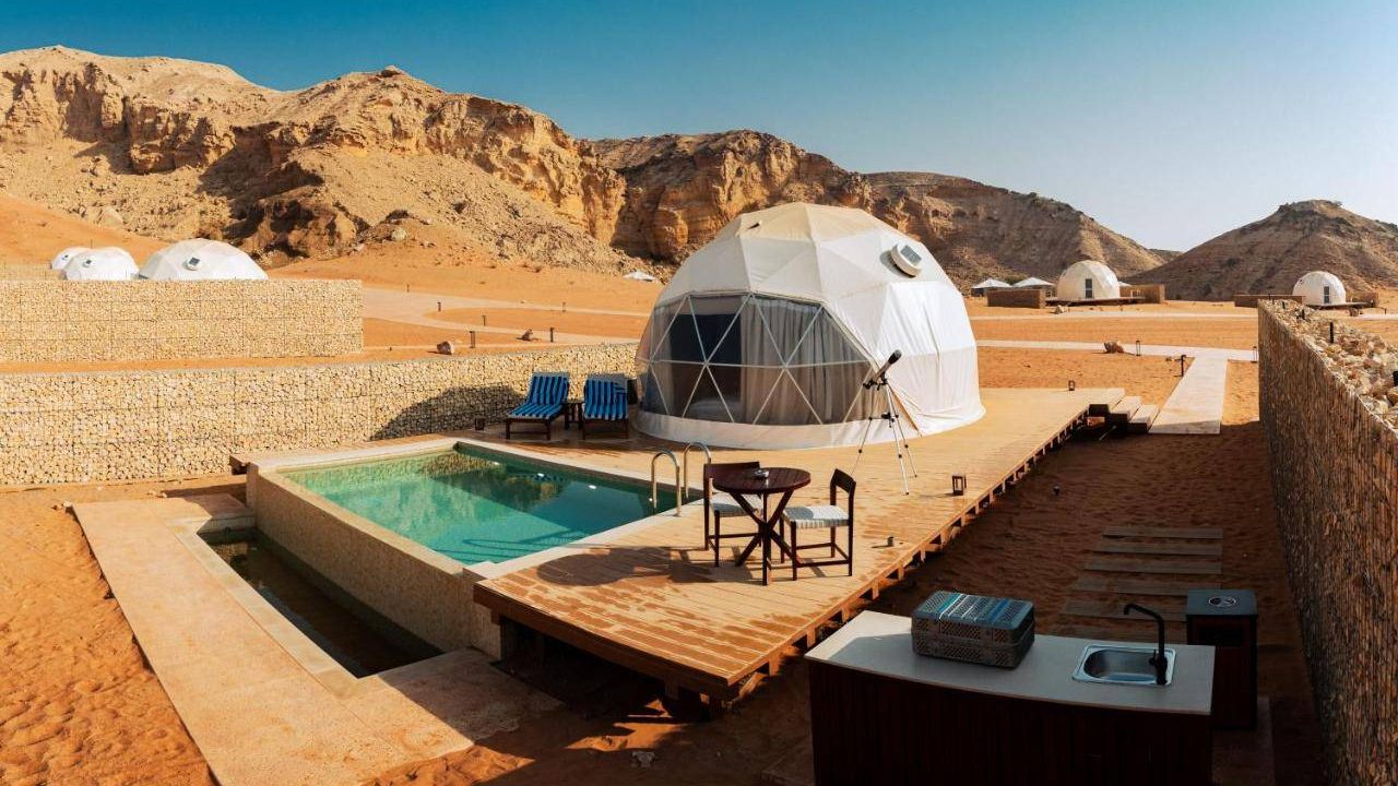 The Nest by Sonara features eco-luxury pods designed to create an intimate and environmentally conscious desert stay. Each pod offers comfort while allowing guests to stay closely connected to the natural landscape. It’s a sought-after choice for those wanting a stylish, nature-driven getaway.