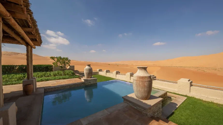 The Ritz-Carlton Ras Al Khaimah offers a secluded desert escape surrounded by dunes and wildlife. Guests enjoy private pool villas, nature activities, and tranquil scenery ideal for a restful staycation. Its serene setting makes it one of the region’s most sought-after luxury desert retreats.
