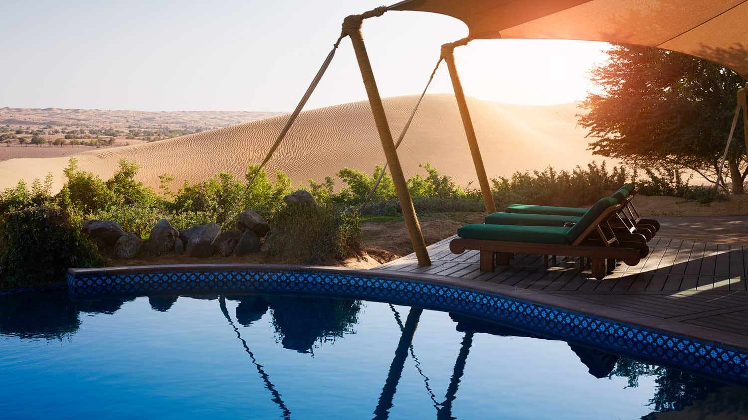 Located just 50 minutes outside of Dubai, the luxurious Al Maha Desert Resort and Spa offers secluded accommodations in the heart of the Dubai Desert Conservation Reserve. With breathtaking views of the desert, guests can enjoy a range of activities such as horseback riding, safaris, and camel trekking. The resort’s rooms and suites feature Bedouin-style decor and regional antiques, and some even have private pools with views of the desert. The in-house restaurant Al Diwaan serves up delicious meals with a calm atmosphere and views of the nature reserve. Special experiences such as the al fresco Dune Dining Experience allow guests to dine under the stars surrounded by tiki torches.