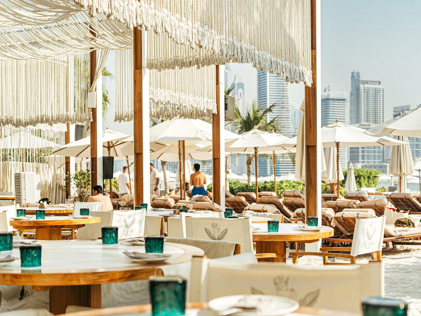 EVA Beach House combines Bohemian charm with Mediterranean flavors, creating a laid-back yet refined beachfront setting. Guests can enjoy seafood platters, grilled meats, and fresh salads while taking in the serene ocean views. The venue’s chic decor, private cabanas, and vibrant atmosphere make it a popular choice for both dining and lounging.
