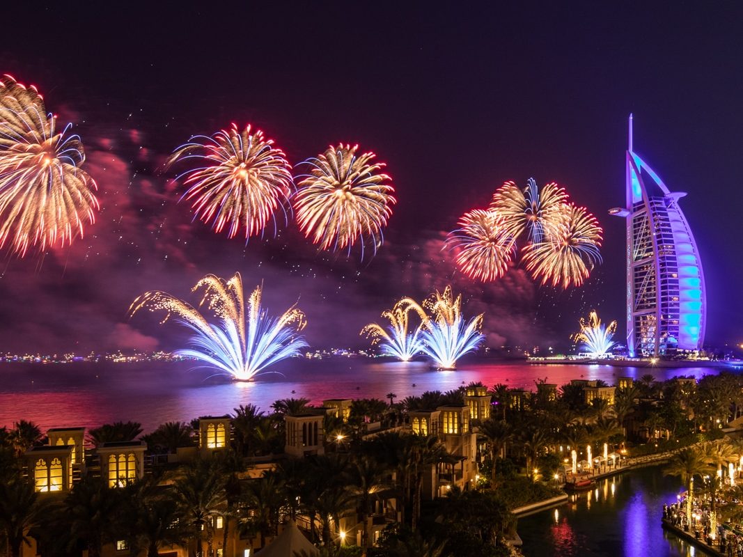 Atlantis The Palm hosts one of the grandest fireworks displays in Dubai, visible from various spots on the Palm Jumeirah. Guests can enjoy both the fireworks and live performances by renowned artists at this luxury resort. The celebration at Atlantis is a must for those looking to combine breathtaking views with an unforgettable experience.