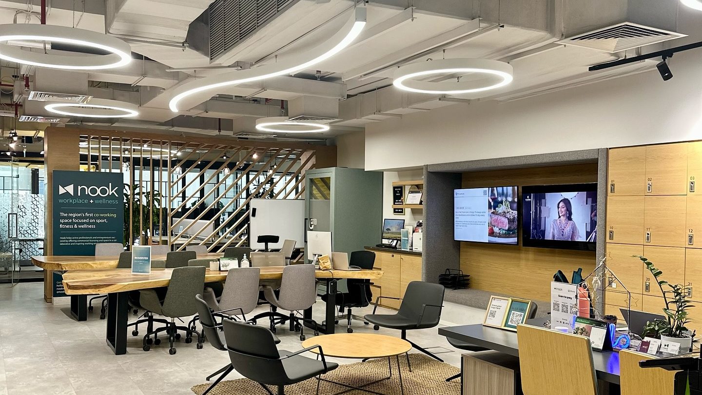 Nook coworking space is targeted specifically towards Dubai’s professionals in the sports, fitness, and wellness industries. In addition to meeting and ‘Zoom rooms’ there are also purpose-built studios and training areas on-site. Regular community socials, talks and training workshops. Nook supports entrepreneurs with their company setup and residency visas but also offers flexibility for those who are just starting out. Workspaces can be rented by the hour here.