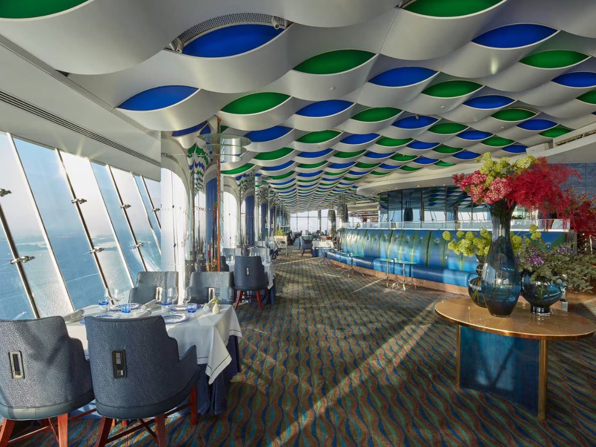 Al Muntaha sits atop the Burj Al Arab, offering panoramic views and a refined menu of modern French cuisine. Known for its fine dining experience, the restaurant delivers exceptional service in a sleek setting. It’s a standout destination for special occasions and elevated evenings.
