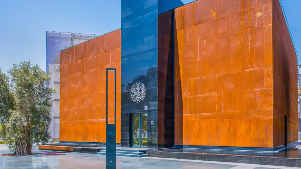 Located in Dubai’s artistic City Walk district, this mosque stands out with its modern cube-shaped design, rust-colored exterior, and sleek glass doors. A striking sculpture by Emirati artist Mattar bin Lahej adorns one side, featuring Arabic calligraphy inspired by a Quranic verse. Visitors can explore the mosque’s unique architecture outside of prayer times, making it a must-visit for those interested in Islamic art and design.