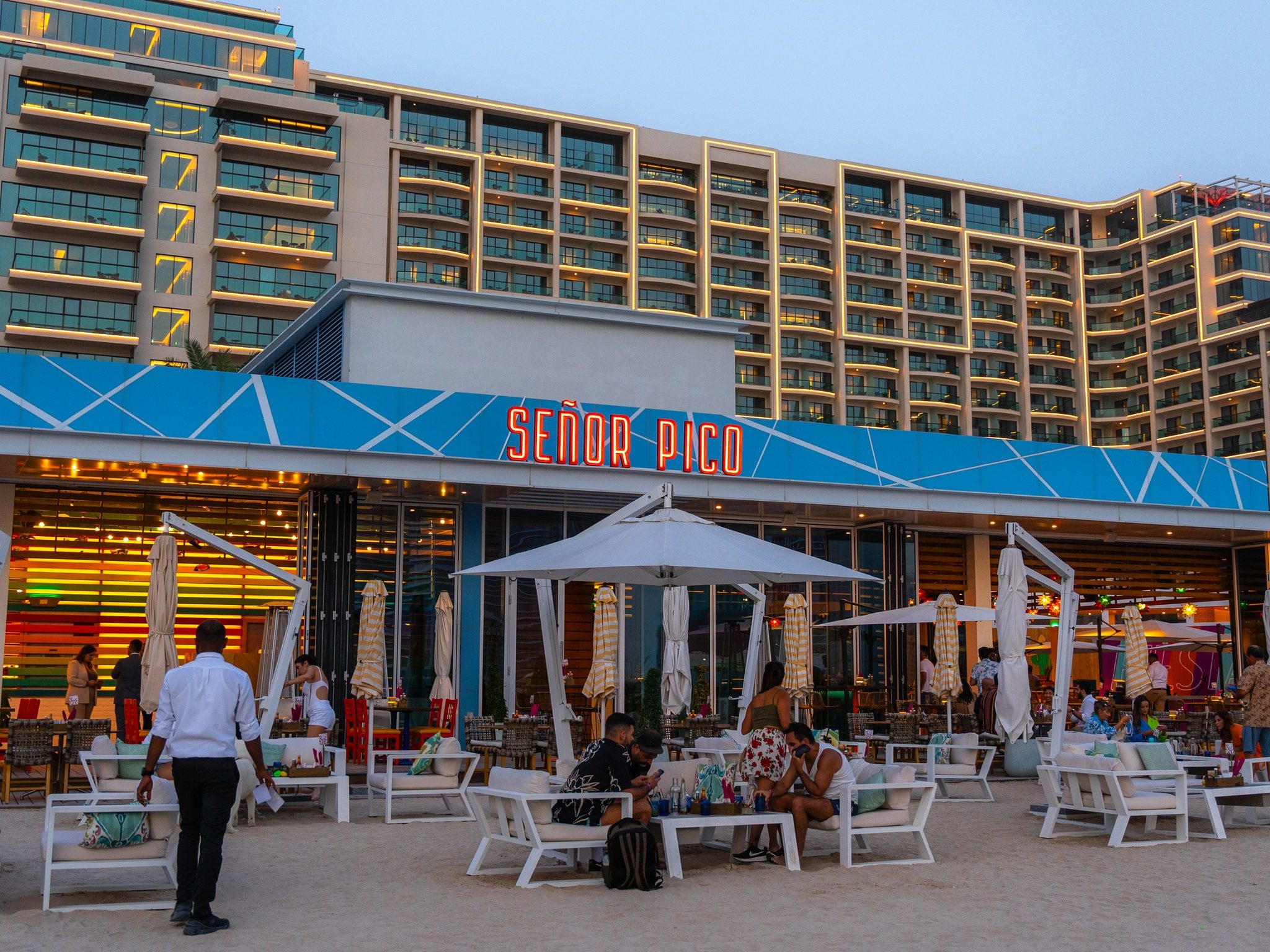 Enjoy a vibrant beach party vibe at Señor Pico, with stunning views of the Marina, Palm, and Ain Dubai fireworks, while indulging in a Mexican feast. Highlights include guacamole, ceviche, tacos, and more, set against the festive backdrop of Palm West Beach. The celebration starts at 8pm and continues until 2am, with prices starting at Dhs950 for soft drinks, Dhs1,250 for house drinks, and discounts for younger guests.