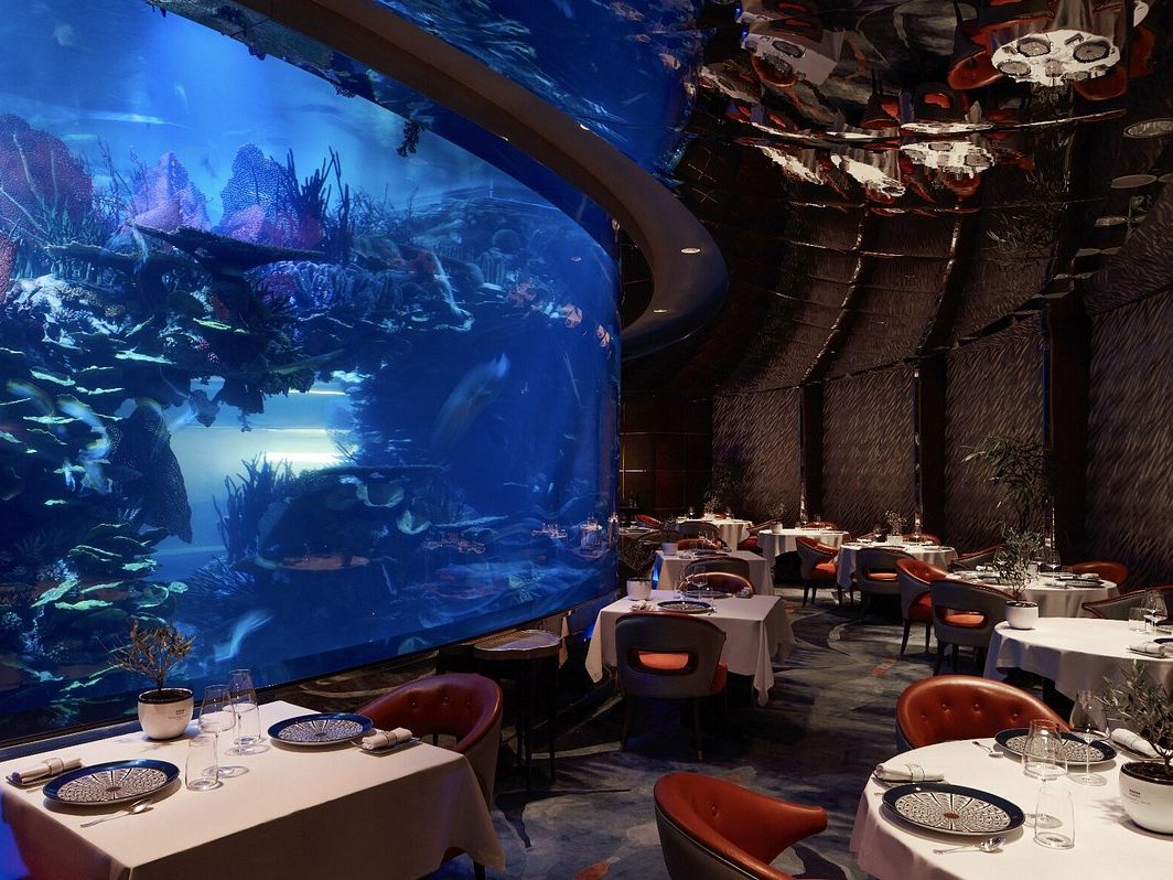 At Ossiano Dubai, located in the iconic Atlantis The Palm, seafood is the star of the show in this award-winning restaurant. Featuring an impressive floor-to-ceiling aquarium, this intimate underwater dining venue offers guests a unique fine dining experience. Michelin-starred chef Grégoire Berger is dedicated to providing an unforgettable culinary journey in this stunning setting.