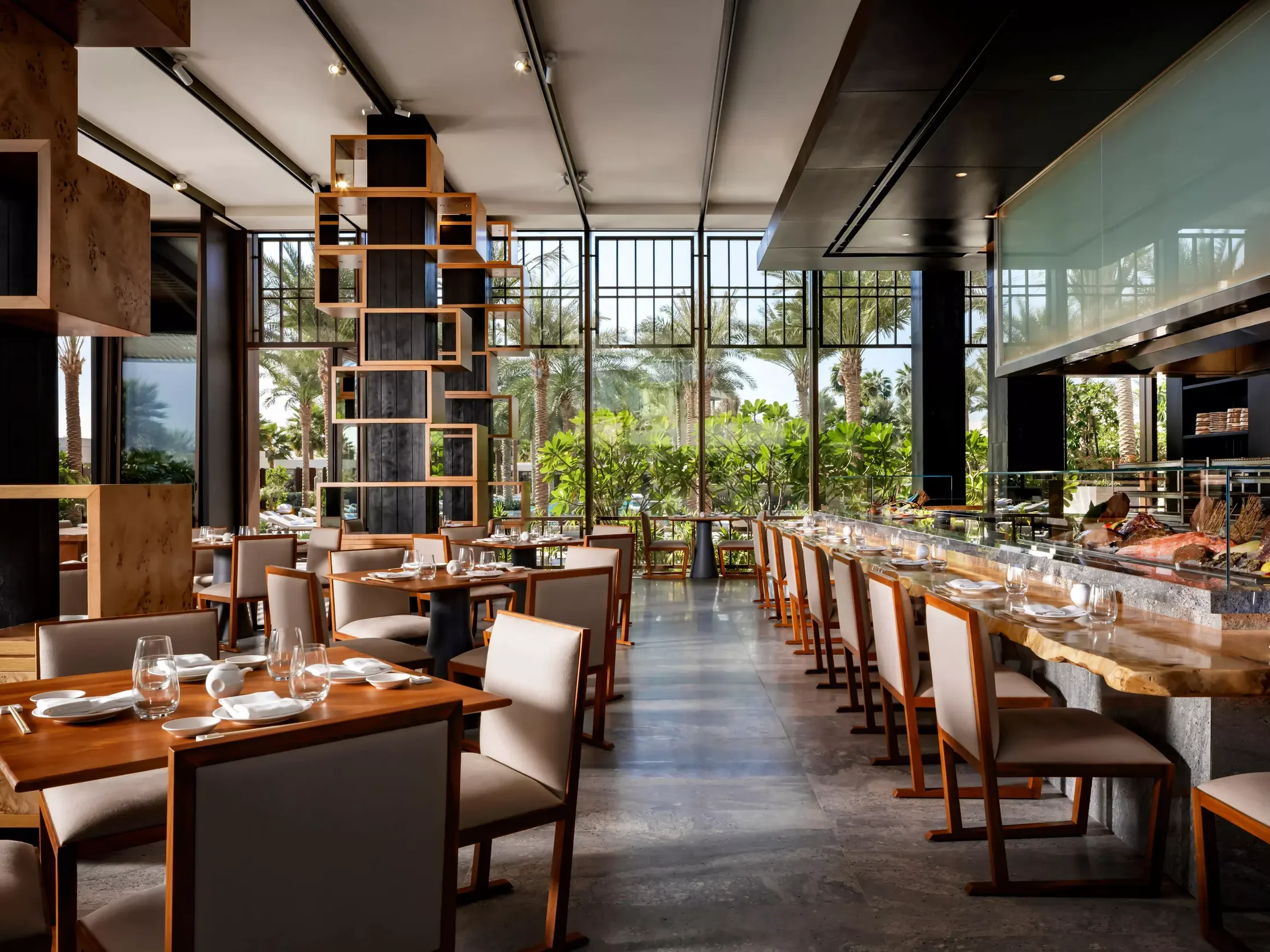 Smoki Moto redefines Korean barbecue with its upscale dining experience at Marriott Resort Palm Jumeirah. Featuring premium meats and authentic Korean flavors, the restaurant offers a modern twist on a classic tradition. Its sleek design and vibrant atmosphere create a memorable dining experience for BBQ lovers.