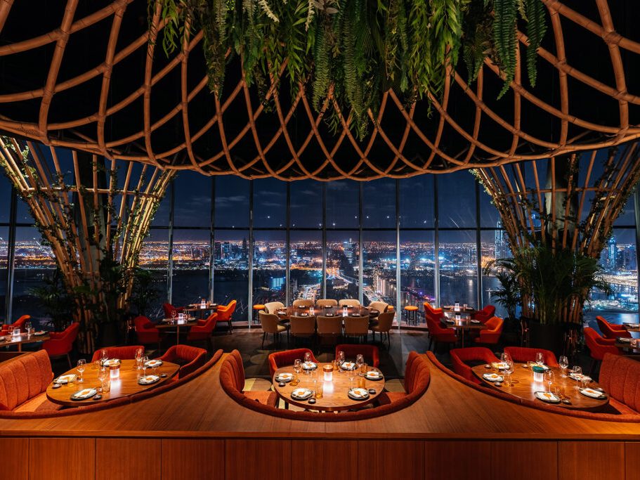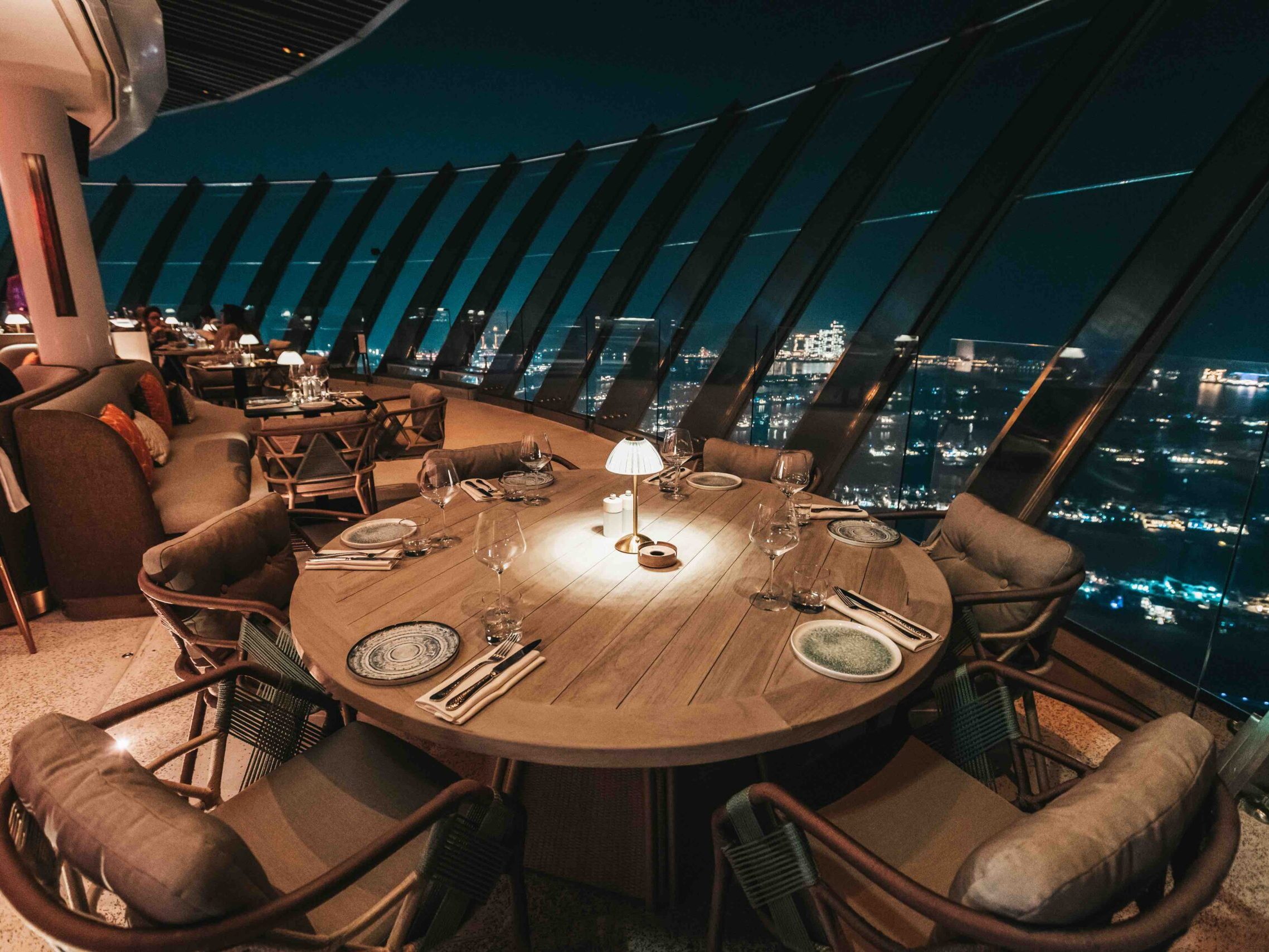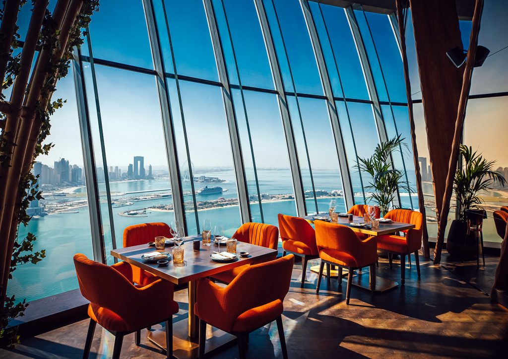 Sushi Samba at The Palm Tower delivers a vibrant fusion of Japanese, Brazilian, and Peruvian cuisines. The restaurant’s location on the 51st floor provides stunning panoramic views of the Dubai skyline. Its lively atmosphere and creative menu make it a top choice for dining with a view on Palm Jumeirah.