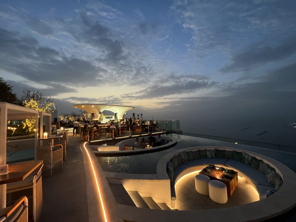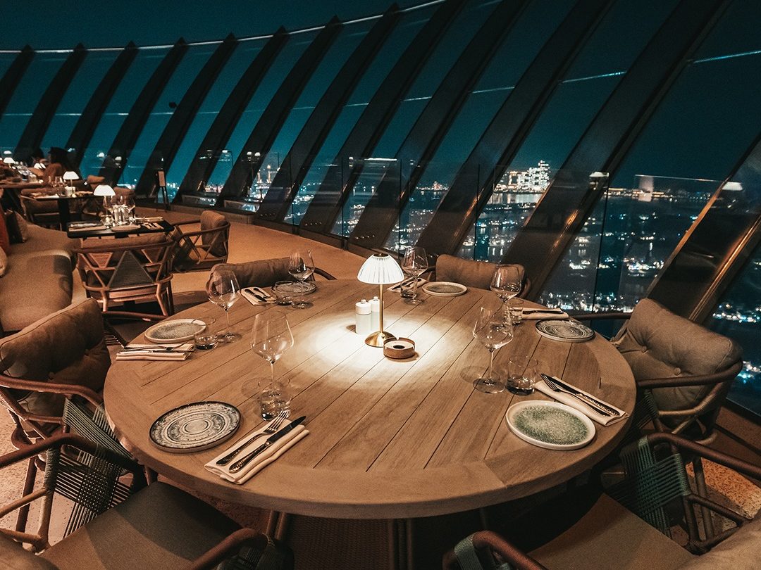CouCou at The Palm Tower blends Mediterranean-inspired cuisine with an elegant rooftop ambiance. The menu features refined dishes, fresh seafood, and creative cocktails, all served against sweeping views of Palm Jumeirah. With its stylish décor and lively setting, it’s a prime destination for a chic rooftop dining experience.