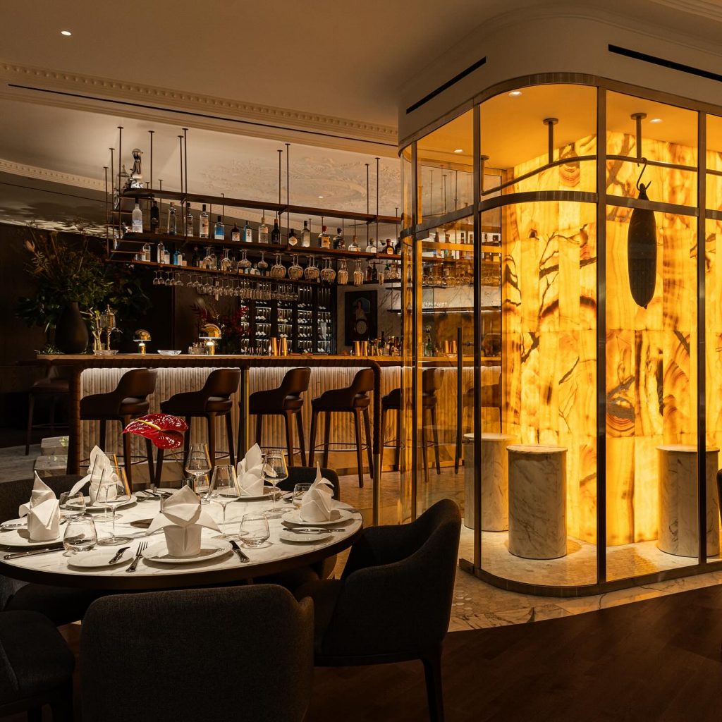 CARO Steakhouse Frenzy, located in the Fairmont Dubai, provides a refined dining experience focused on expertly crafted steaks. The elegant venue features a sophisticated ambiance, highlighted by neutral tones and comfortable leather booths.