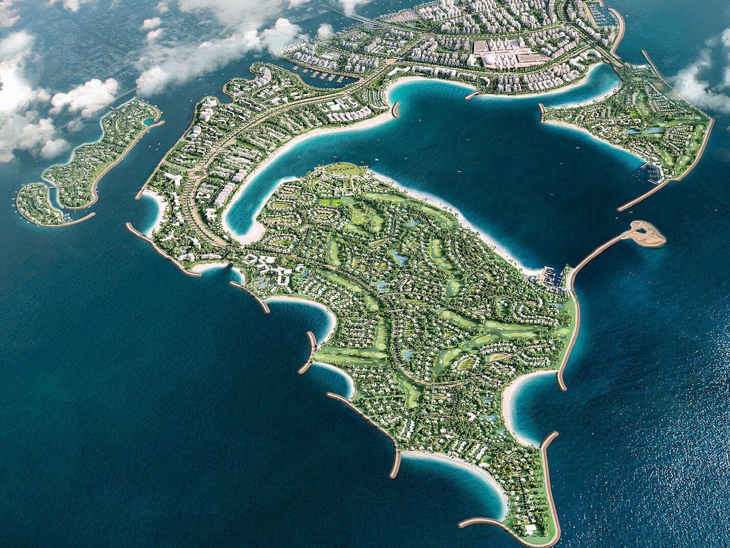 Currently under development, Palm Jebel Ali is set to be twice the size of Palm Jumeirah, featuring residential villas, beachfront resorts, and entertainment hubs. The island will introduce eco-friendly communities and extensive green spaces, adding a new dimension to Dubai’s waterfront lifestyle. Designed for exclusivity and leisure, it will offer a mix of modern luxury and natural beauty.