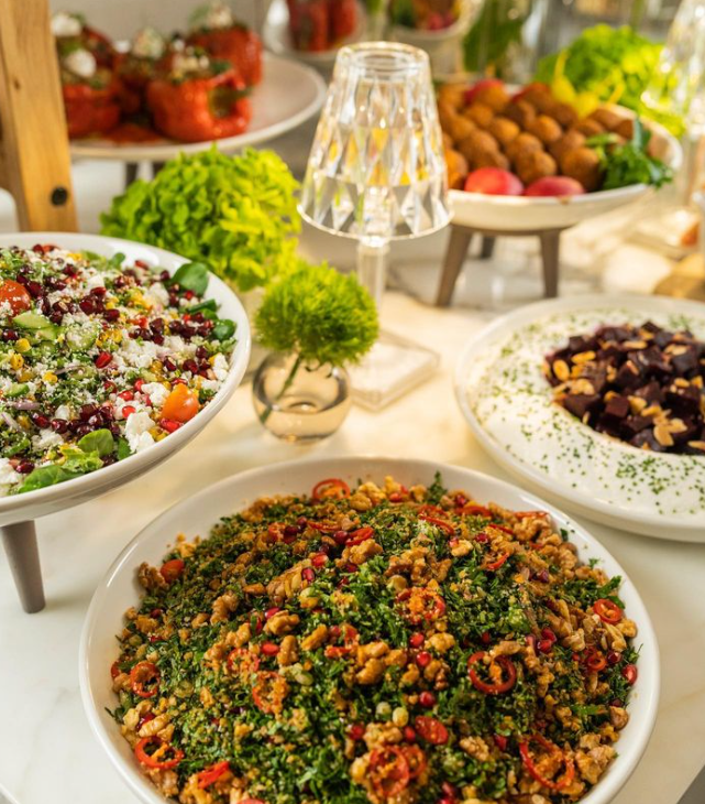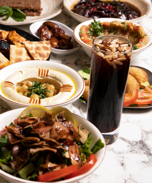 Located near the base of Burj Khalifa, this eatery offers alfresco dining on its terrace with breathtaking views of Burj Khalifa and Dubai Fountain. Guests can indulge in an expansive sharing-style menu featuring Middle Eastern favorites, including a tasty hummus list.