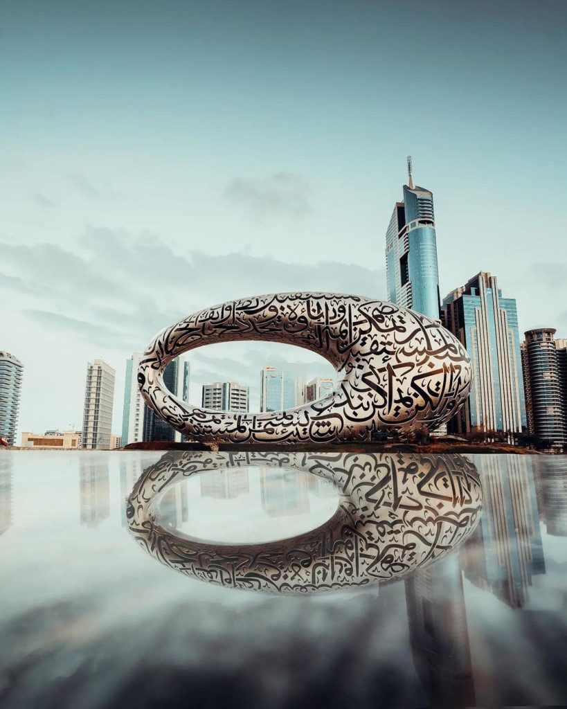 The Museum of The Future, designed as a torus-shaped structure with Arabic calligraphy on its exterior, focuses on innovation and design. Expected to serve as a hub for inventors and entrepreneurs, the museum will display technological advancements and futuristic innovations. It aims to be a catalyst for change and a destination for inventors and entrepreneurs.