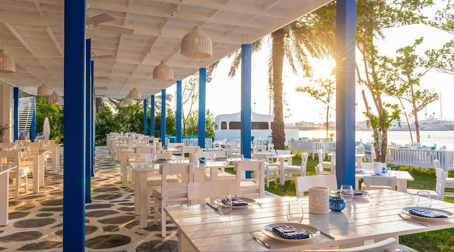 Fish Beach Taverna at Le Méridien Mina Seyahi offers a charming seaside dining experience, inspired by the coastal tavernas of the Aegean. With whitewashed décor, twinkling string lights, and a stunning beachfront setting, the restaurant creates a relaxed yet elegant ambiance. Known for its authentic Mediterranean flavors and serene atmosphere, Fish Beach Taverna is a top destination for seafood lovers in Dubai.