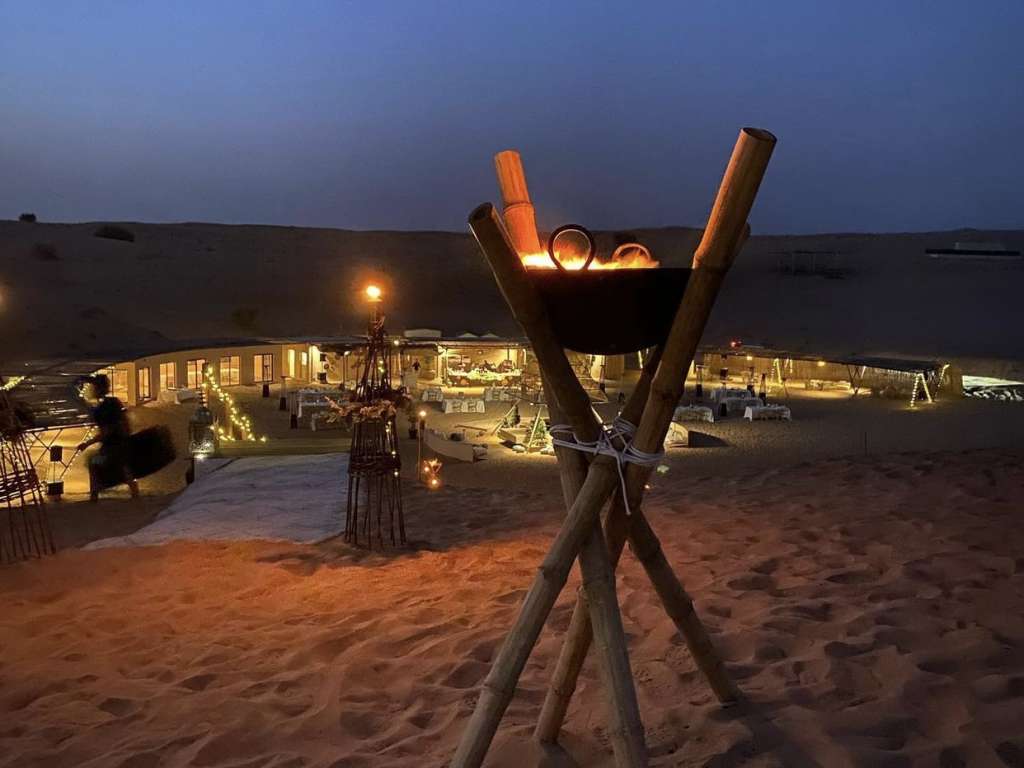 Experience an unforgettable desert dining adventure at Sonara Camp, an eco-friendly and sustainable retreat nestled in the Dubai Desert Conservation Reserve. Discover the wilderness of Dubai and witness the stunning wildlife including oryxes and gazelles while enjoying the Sunset and Dinner experience. Indulge in a delicious chef-prepared dinner made with fresh seasonal ingredients and drinks while enjoying a camel ride, live music, fire and falcon show, and dynamic desert sports such as archery and sandboarding. Located just 40 minutes away from downtown Dubai, Sonara camp offers a unique and unforgettable desert experience.