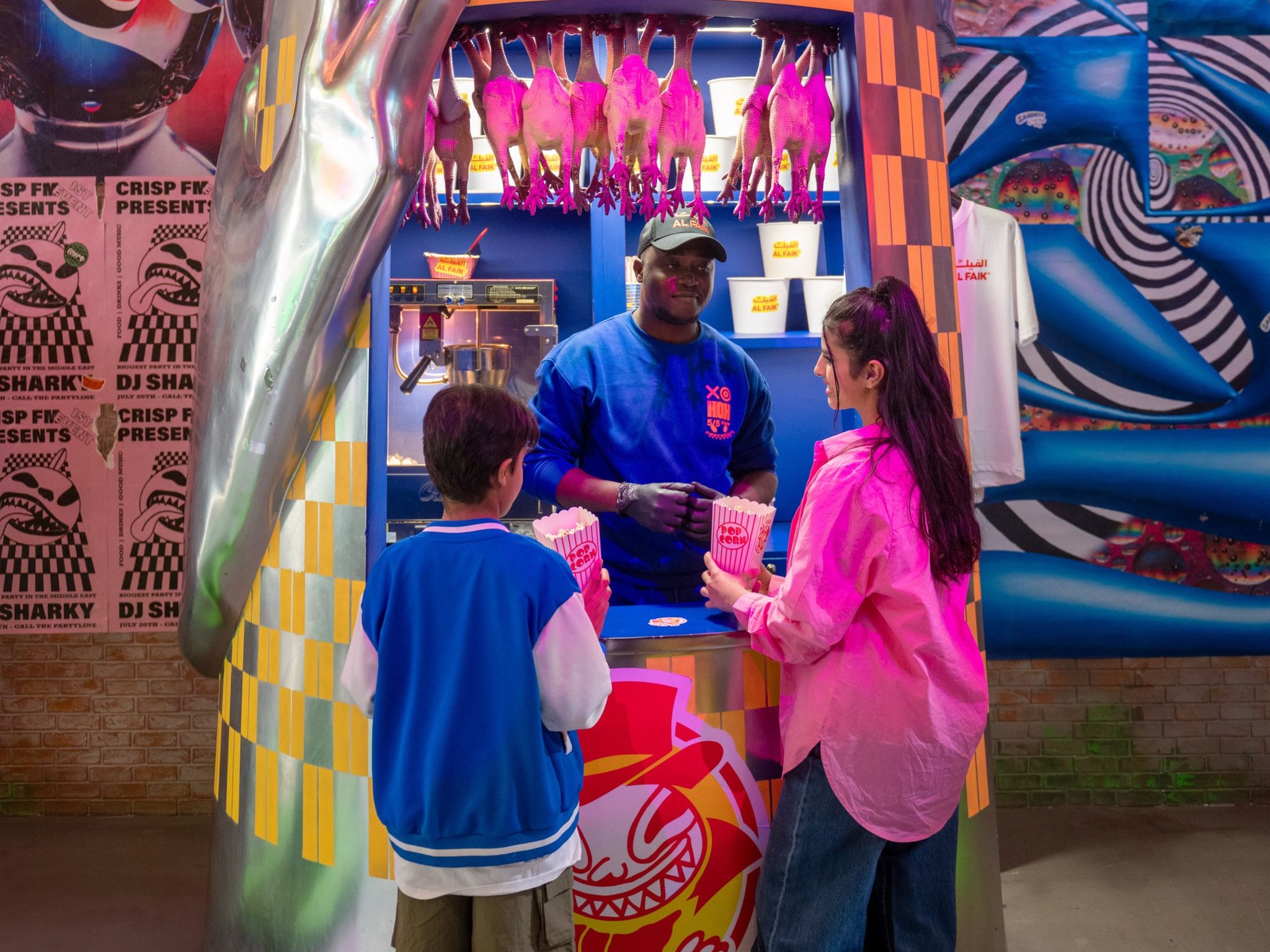 Aya Universe transports guests into a dreamlike realm filled with cosmic visuals, flowing light installations, and responsive digital landscapes. Visitors can explore different zones, each designed to evoke wonder through movement-sensitive projections and interactive storytelling. This futuristic experience offers a visually stunning escape into a world of color, light, and motion.