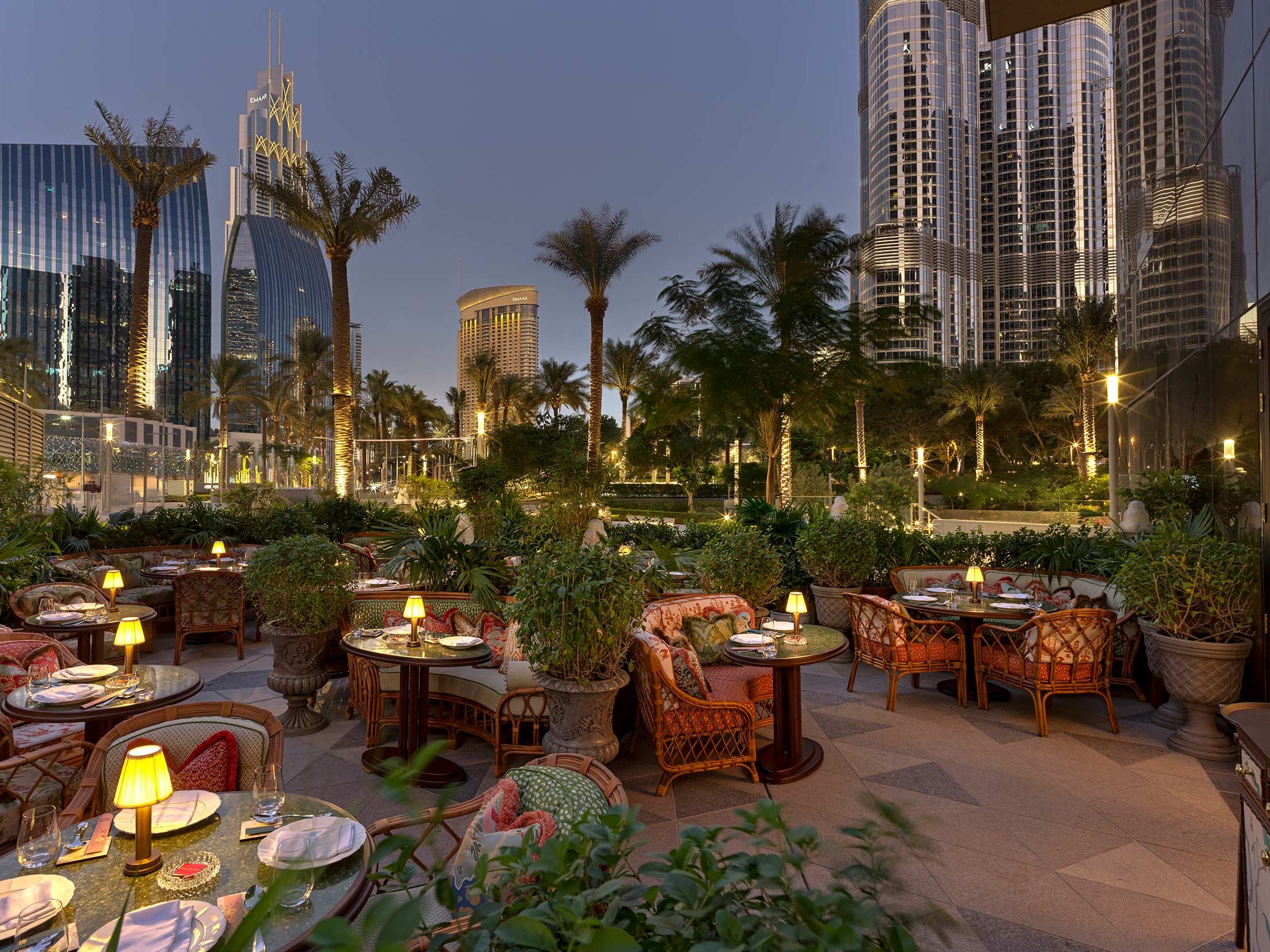 Thiptara at Palace Downtown is renowned for its Thai cuisine and incredible views of the Burj Khalifa fireworks. The restaurant’s outdoor terrace offers guests an unparalleled view of the Dubai Fountain and the fireworks show, making it an excellent spot for a festive celebration. With delicious food and a prime location, Thiptara delivers a truly unforgettable dining experience.