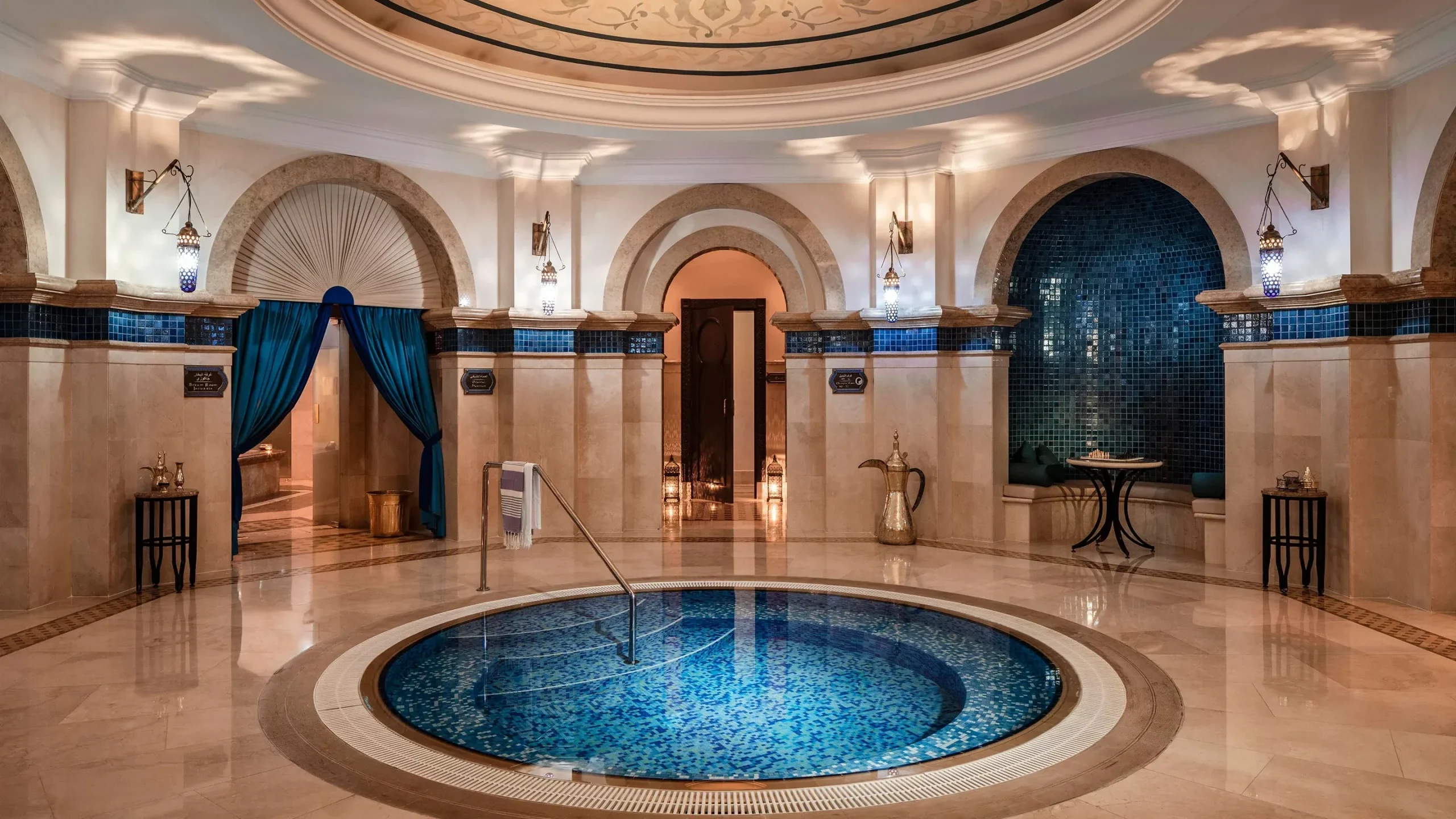 Talise Ottoman Spa is known for its scale. It encloses an impressive 42 treatment rooms as well as thalassotherapy pools, steam rooms, saunas, and a snow room. This spa offers Turkish-influenced treatments and surroundings blended with luxury including the largest hammam treatment room in the Middle East.