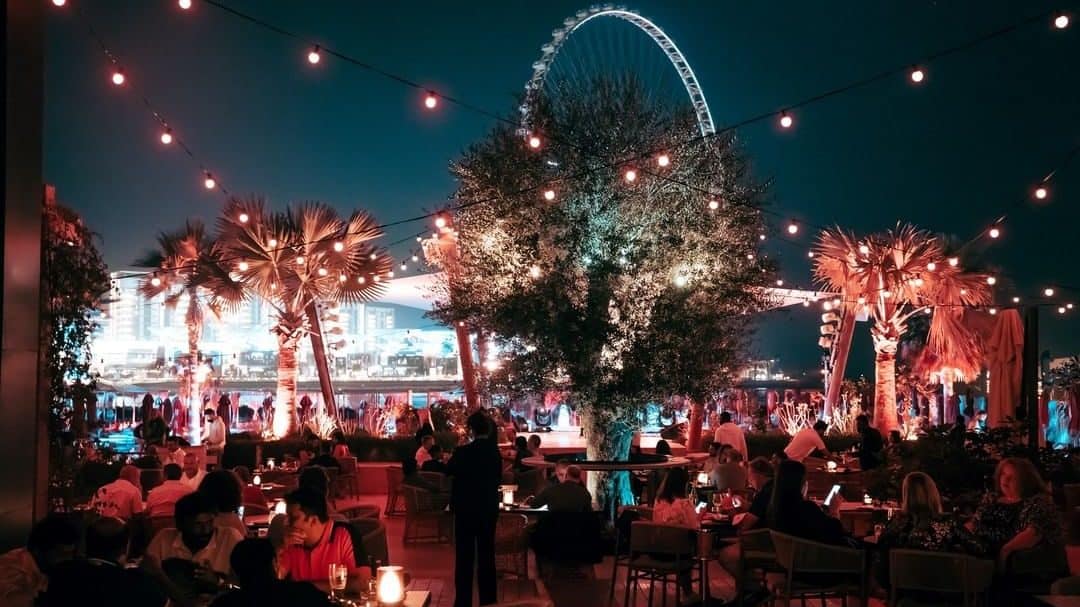Alfresco area with a backdrop of the Museum of the Future