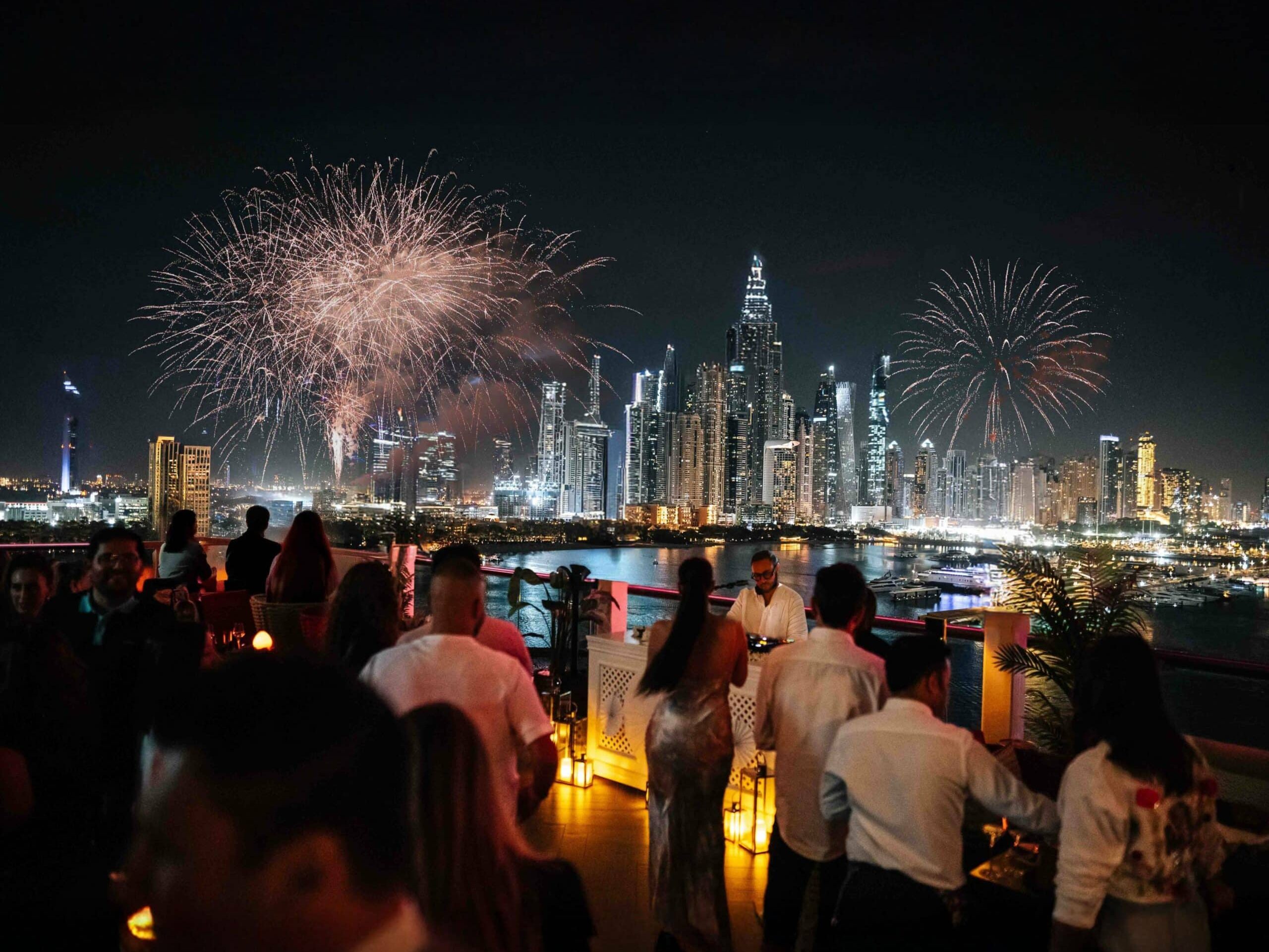 Paradiso at Five Luxe JBR offers a vibrant setting with stunning views of the Dubai coastline, perfect for enjoying New Year’s Eve fireworks. Guests can dine on Mediterranean-inspired dishes while watching the fireworks light up the sky. The chic atmosphere and exceptional service make it an ideal spot for welcoming 2026.
