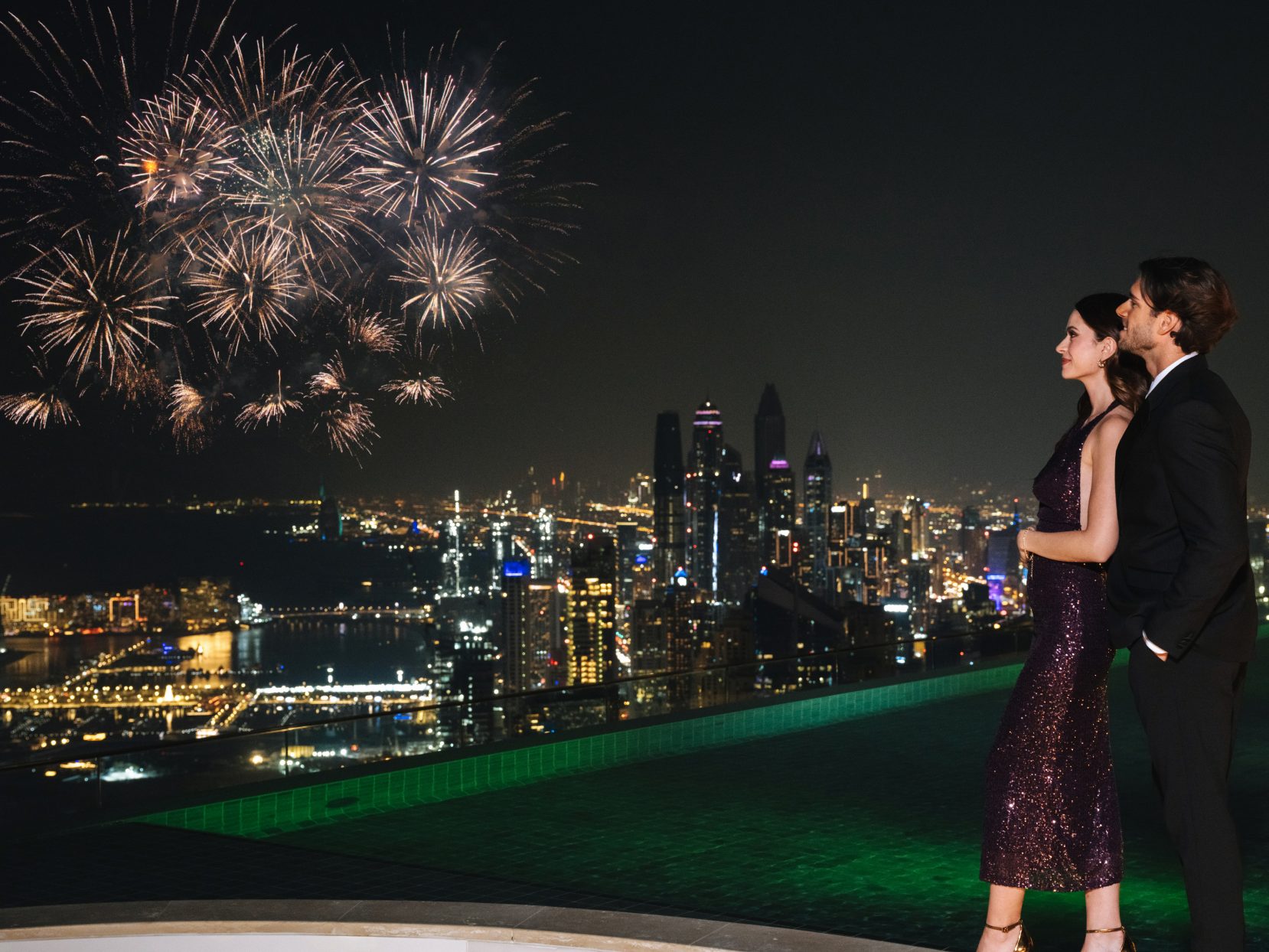 Aura Skypool Lounge at Palm Tower offers a luxurious vantage point with 360-degree views of Dubai, ideal for viewing the city’s most anticipated New Year’s Eve fireworks. The venue combines a stylish atmosphere with a top-tier menu, offering guests a sophisticated yet relaxed experience. Its prime location ensures a memorable celebration as the city welcomes 2026.