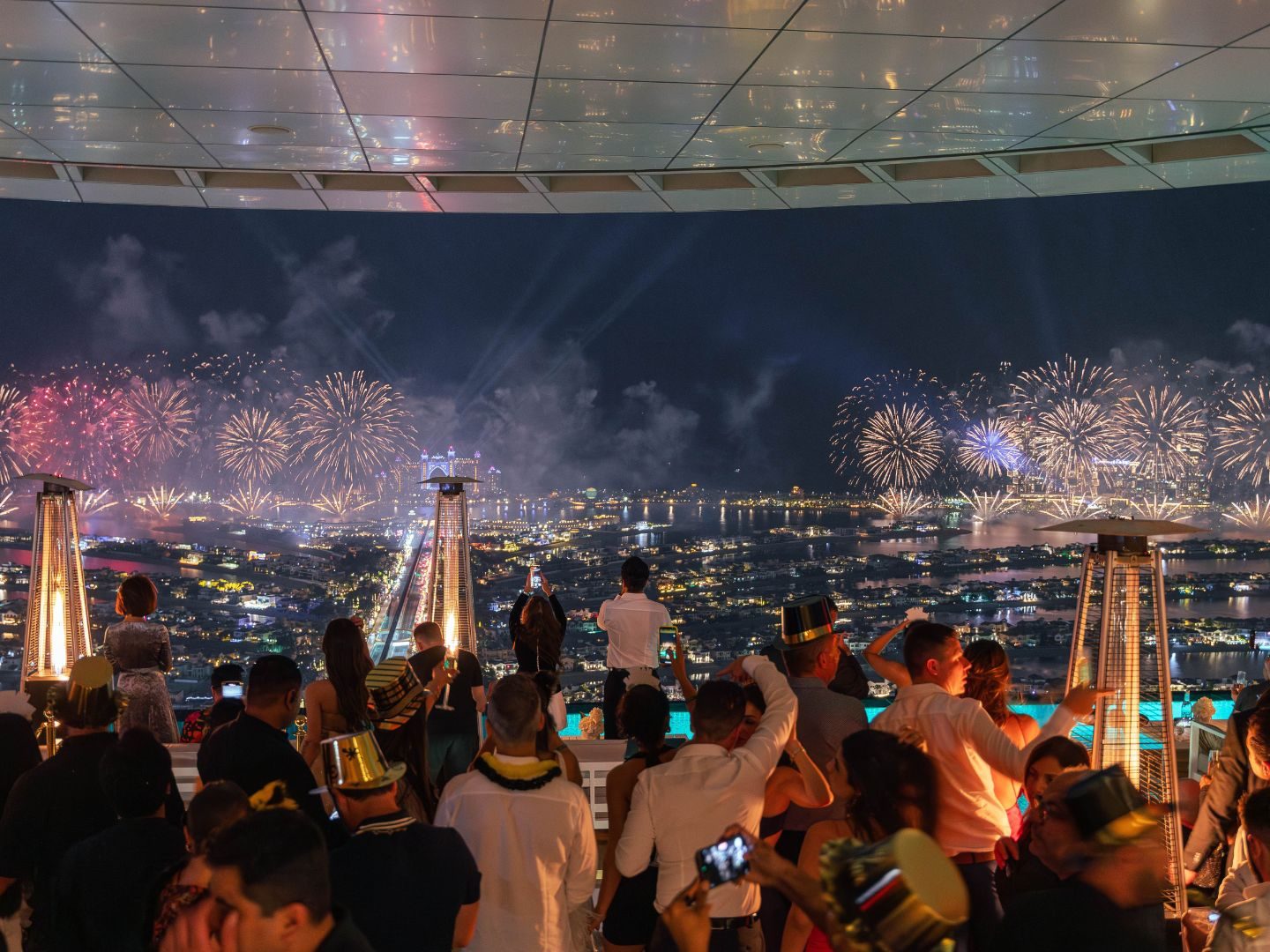 Privilege SLS at SLS Dubai Hotel & Residences offers an upscale rooftop setting with stunning views of the Dubai skyline and fireworks. Guests can indulge in gourmet cocktails and tapas while watching the fireworks light up the sky. The chic atmosphere and exceptional service ensure an unforgettable experience for ringing in the New Year.