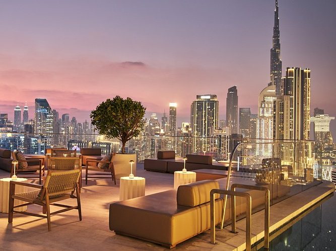 High Society at The Lana Hotel offers an elegant rooftop setting with panoramic views of Dubai’s skyline, making it a prime spot for New Year’s Eve fireworks. The venue’s sophisticated décor and exceptional menu provide the perfect backdrop for a stylish celebration. Guests can enjoy world-class drinks and gourmet food while watching the fireworks from an exclusive vantage point.