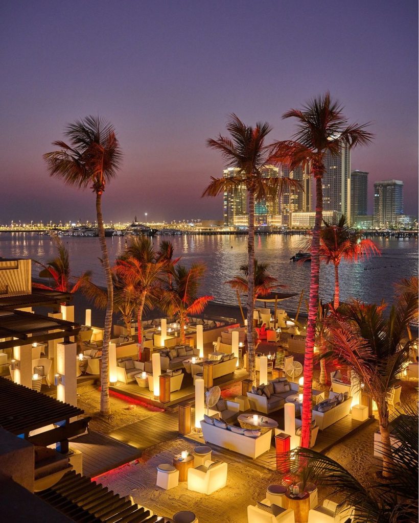 Jetty Lounge is a popular choice in Dubai for its stunning views and elegant beachside dining and drinking atmosphere. Enjoy a cozy seat on a bean bag or chair, making it the perfect location for a romantic date or social gathering with friends. The Mediterranean-inspired menu features delicious small plates and mezze. The trip to the bar, via golf buggy through the hotel’s lush vegetation, is a delightful experience in itself. The Jetty Lounge’s DJ sets a relaxed vibe with mellow lounge music.
