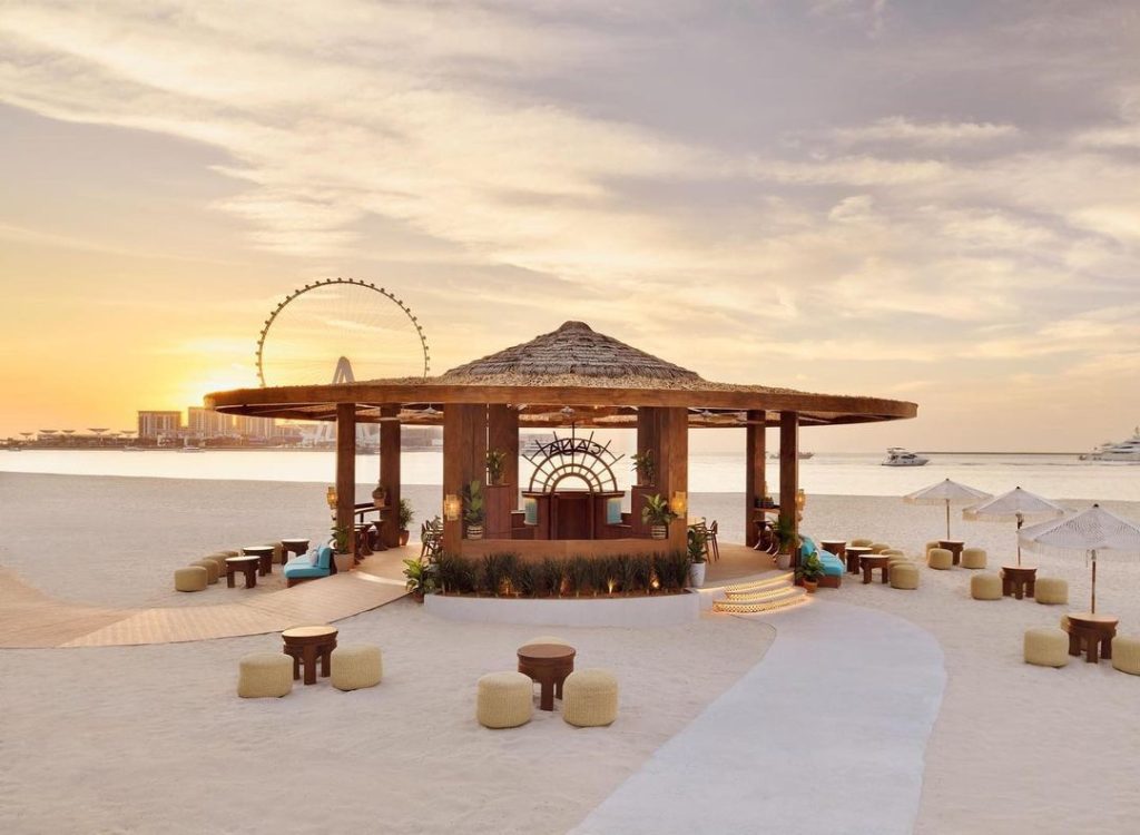 Located in the heart of JBR, Caña by Tamoka offers guests impressive Ain Dubai and sea views. The family-friendly venue takes influence from the spirit of Central America from Cartagena to the Caribbean. Make your way down a winding path and head to the vibey circular beach bar, ideal for sundowners and laid-back snacks with a Latin accent. The DJ booth ensures the atmosphere stays uplifting.