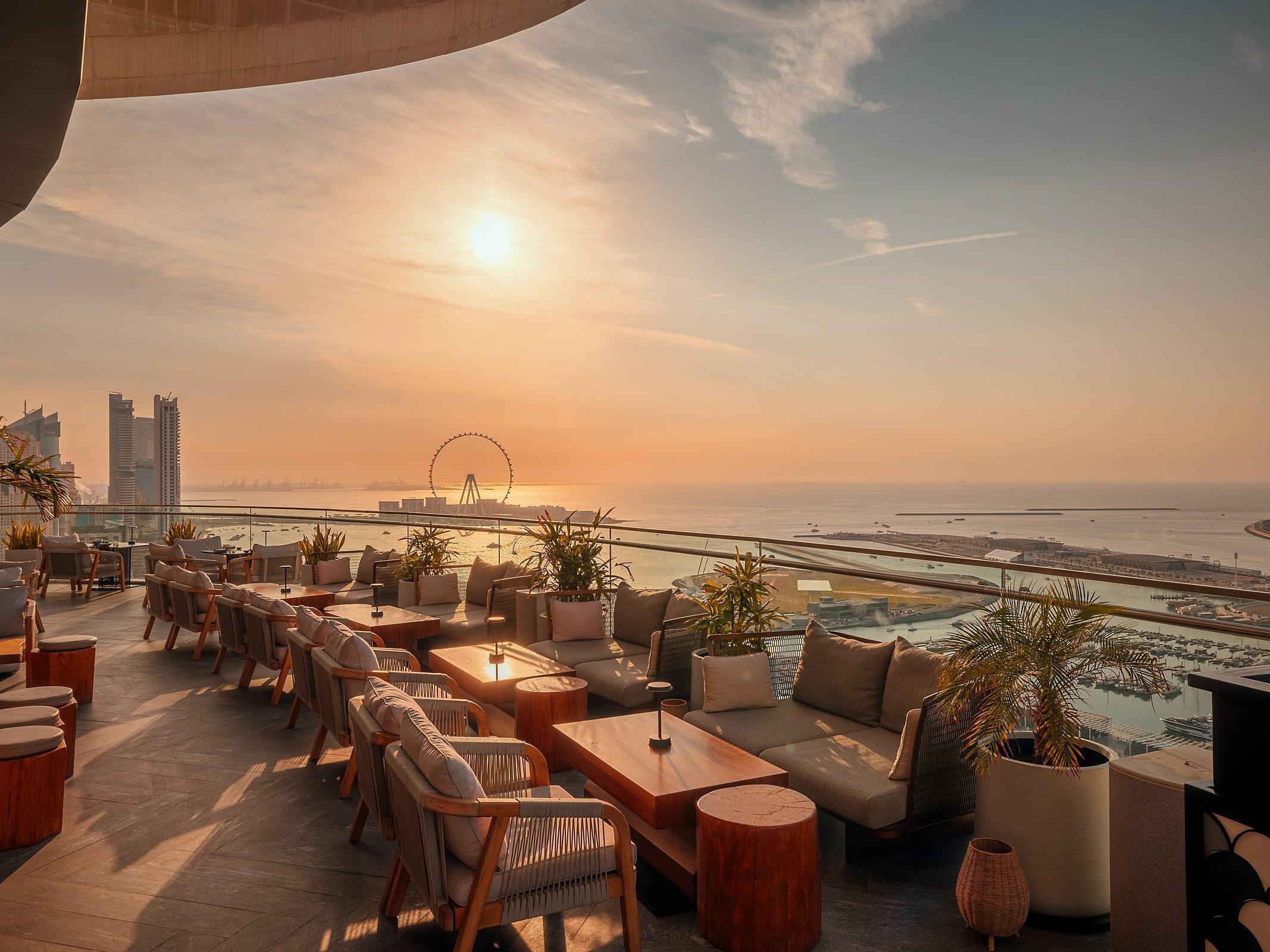 Address Grand Creek Harbour provides a serene environment for sunset views from its elegant outdoor spaces. The stunning backdrop of the Dubai skyline enhances the dining experience, making it a perfect spot for a romantic evening. Guests can savor delightful cuisine while basking in the warm glow of the setting sun.
