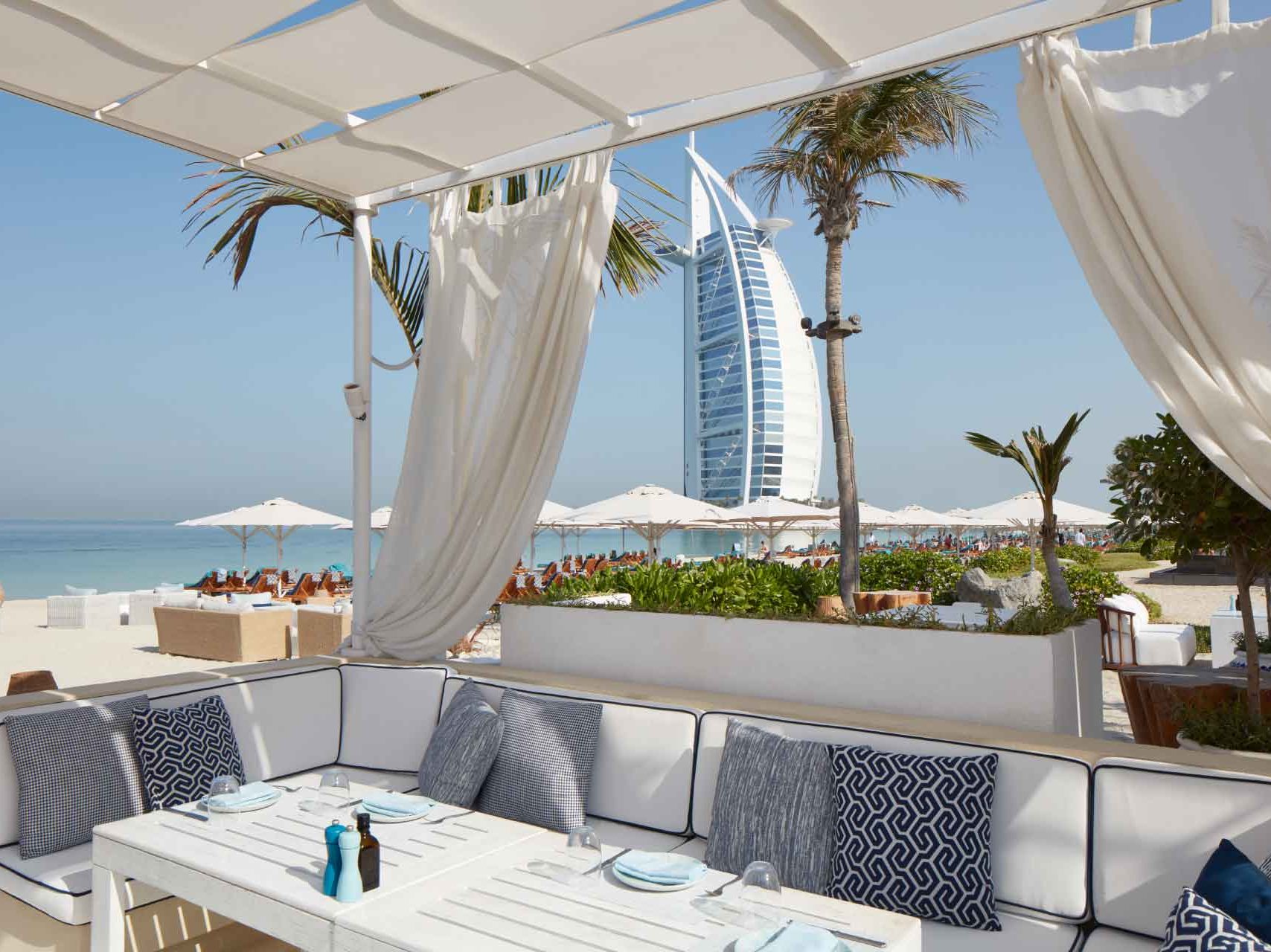 Shimmers on the Beach provides a relaxed beachfront setting for guests to unwind and enjoy the sunset. With breathtaking views of the iconic Burj Al Arab, it’s an ideal spot to sip cocktails and savor delicious Mediterranean cuisine. The laid-back vibe adds to the charm of this sunset destination.